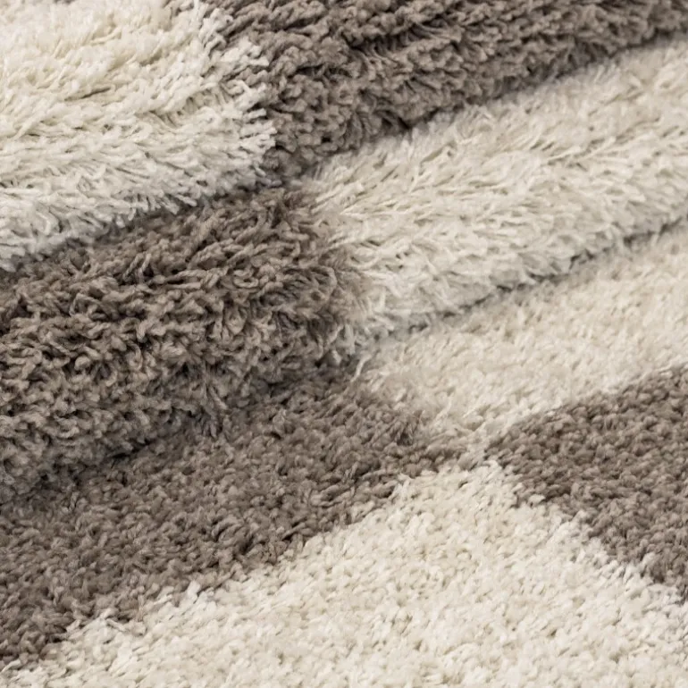 Gala Rund Shaggy tæppe Ternet – Beige