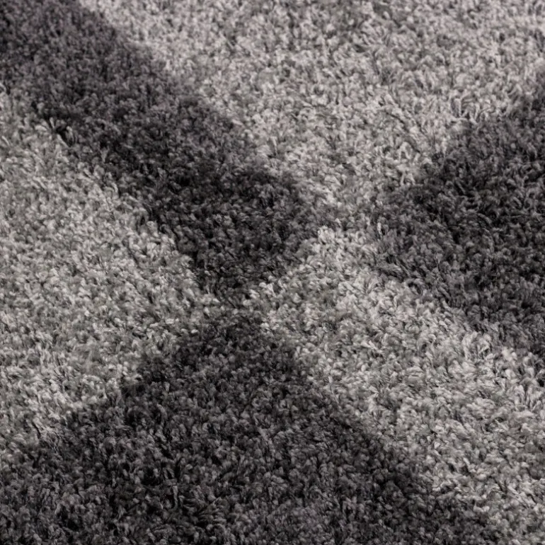 Gala Rund Shaggy tæppe Ternet - Grå