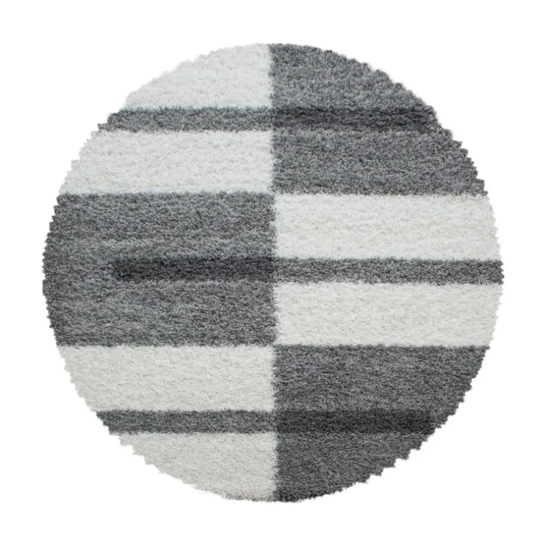 Gala Rund Shaggy tæppe Ternet – Lysegrå