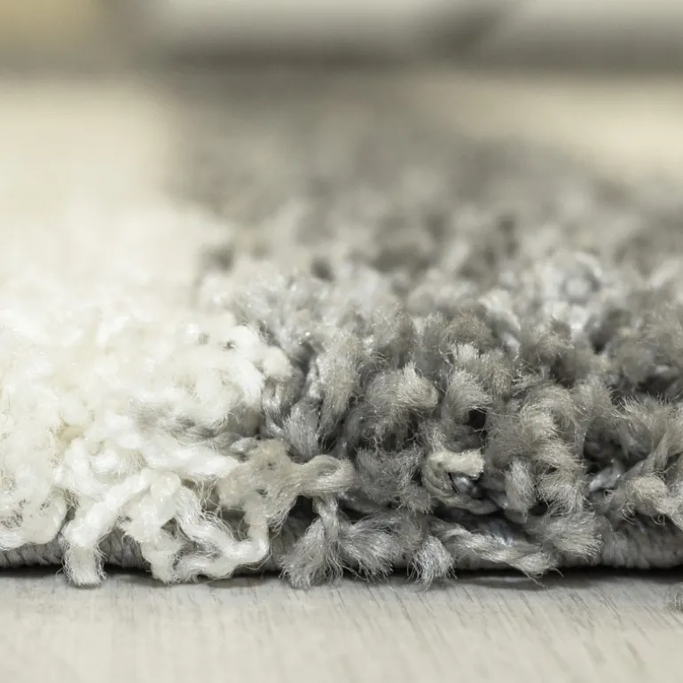 Gala Rund Shaggy tæppe Ternet - Lysegrå