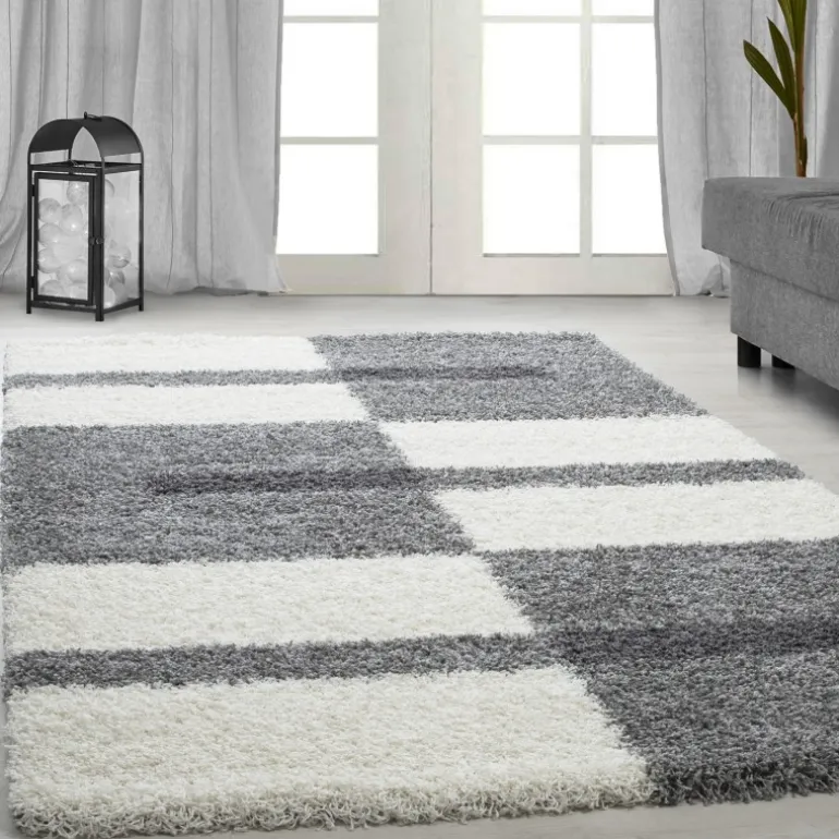 Gala Shaggy tæppe Ternet – Lysegrå
