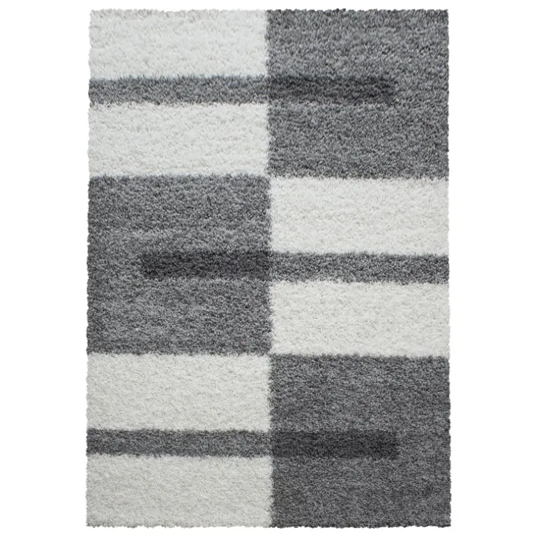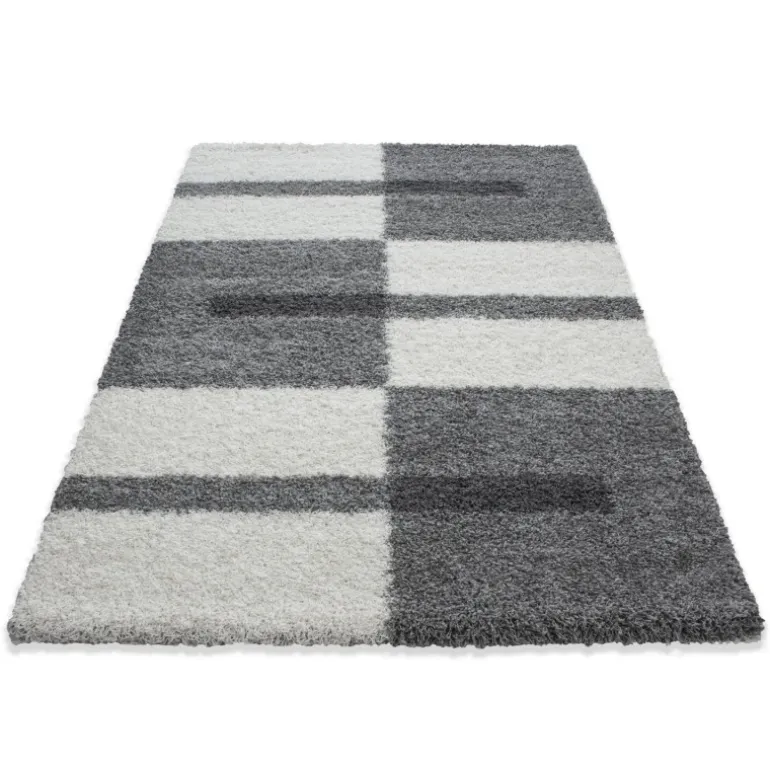 Gala Shaggy Tæppeløber Ternet – Lysegrå
