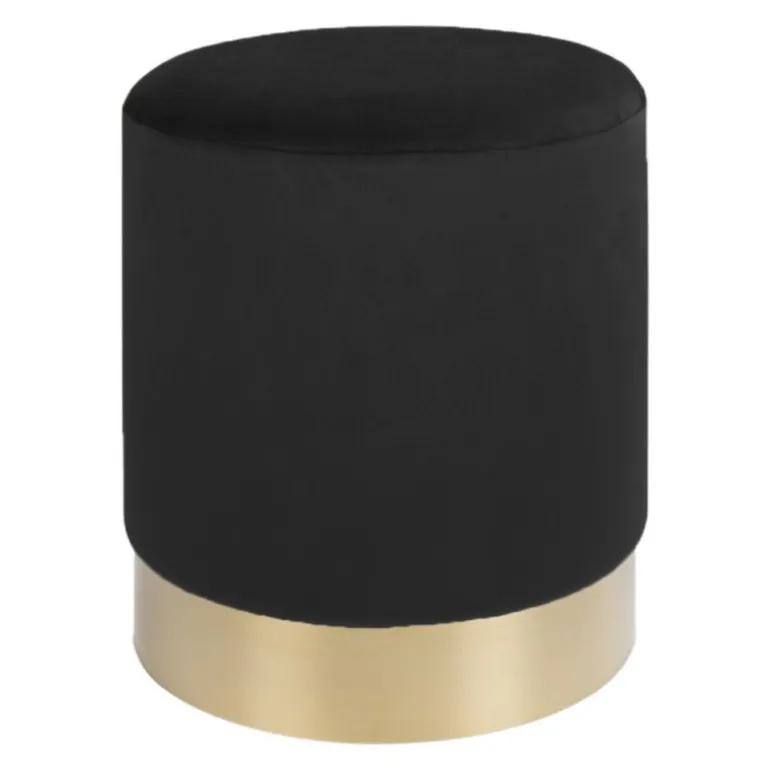 Puf i sort velour med messing farvet kant