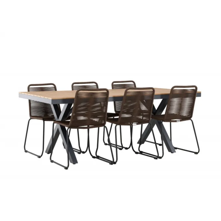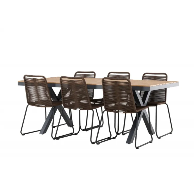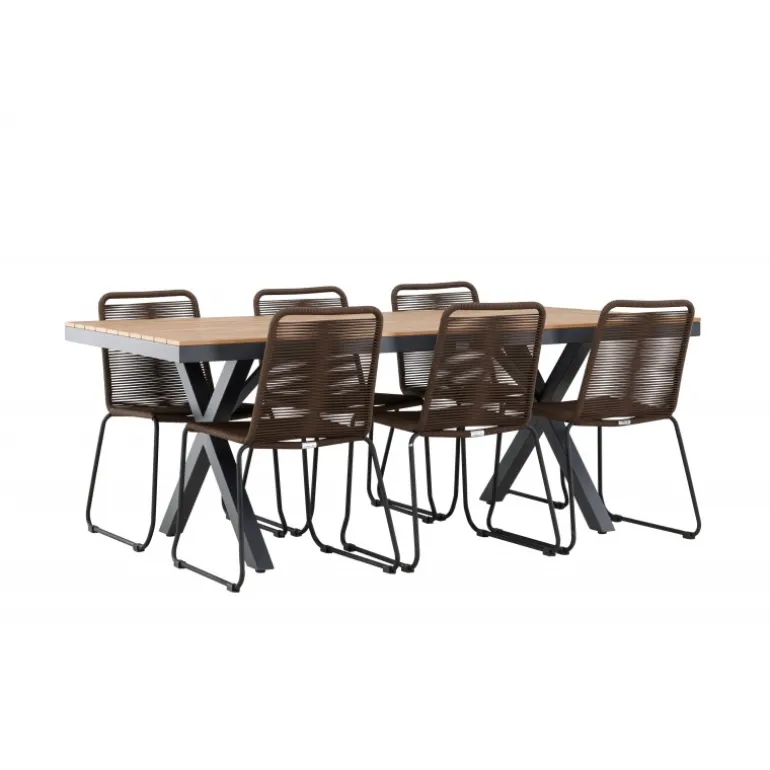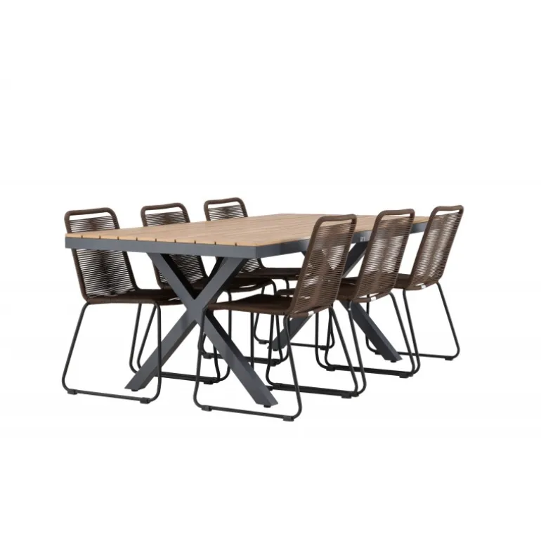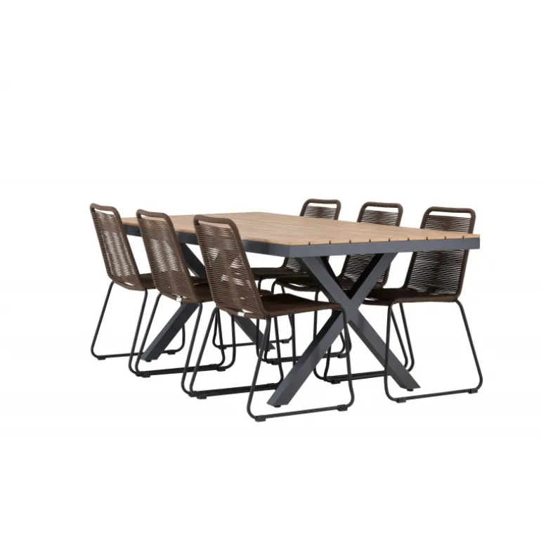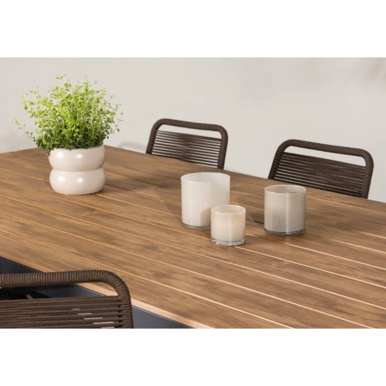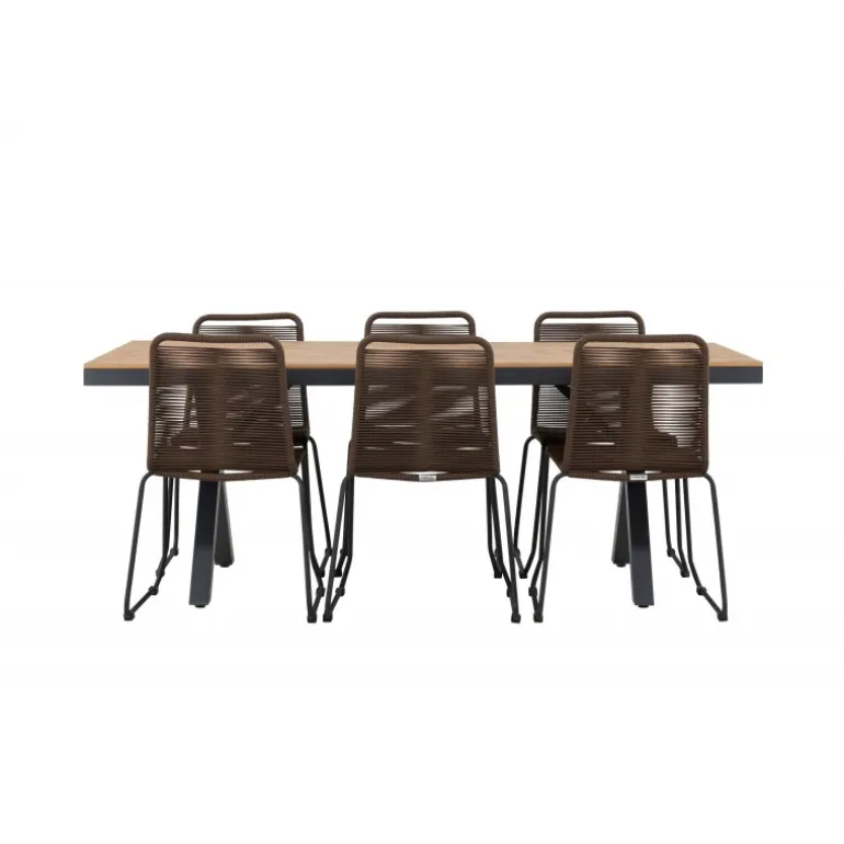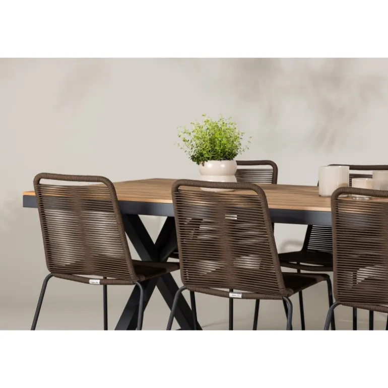Oplev det perfekte samlingspunkt for venner og familie med vores nye Loungesæt – Havemøbelsæt – Lindos og Garcia. Med gennemtænkt design og en jordnær følelse vil dette ensemble skabe en varm atmosfære og løfte dit udendørsområde til nye højder. Lindos-stolene er lavet med omhu og design i tankerne. De har sæder i brunt polypropylenmateriale og ben i sort stål, som tilbyder både komfort og stil. Denne kombination tilføjer et moderne touch med en varm og indbydende følelse. Garcia-bordet fungerer som midtpunkt i dette Loungesæt – Havemøbelsæt med sine imponerende dimensioner på 200×74 cm. Bordpladen i brunt finer materiale og basen i sort aluminium giver et gennemtænkt og slankt look, der er perfekt til samlinger med kære udendørs. Dette Loungesæt – Havemøbelsæt er ideelt til udendørs brug og skaber en atmosfære af kammeratskab og venskab med sit varme og jordnære design. Med seks stole inkluderet er dette sæt komplet til at skabe mindeværdige øjeblikke og nyde dejlige udendørs oplevelser.