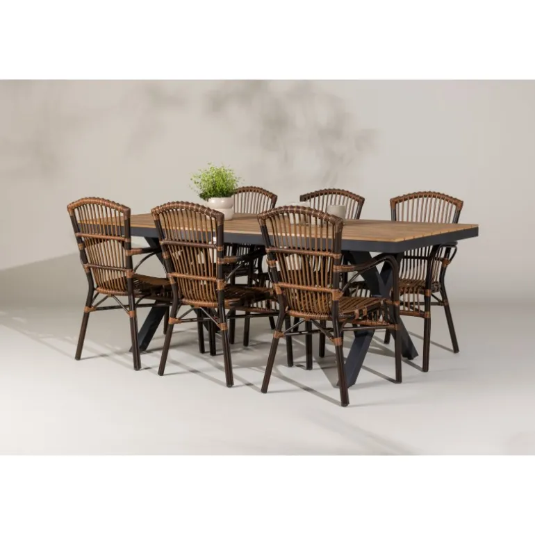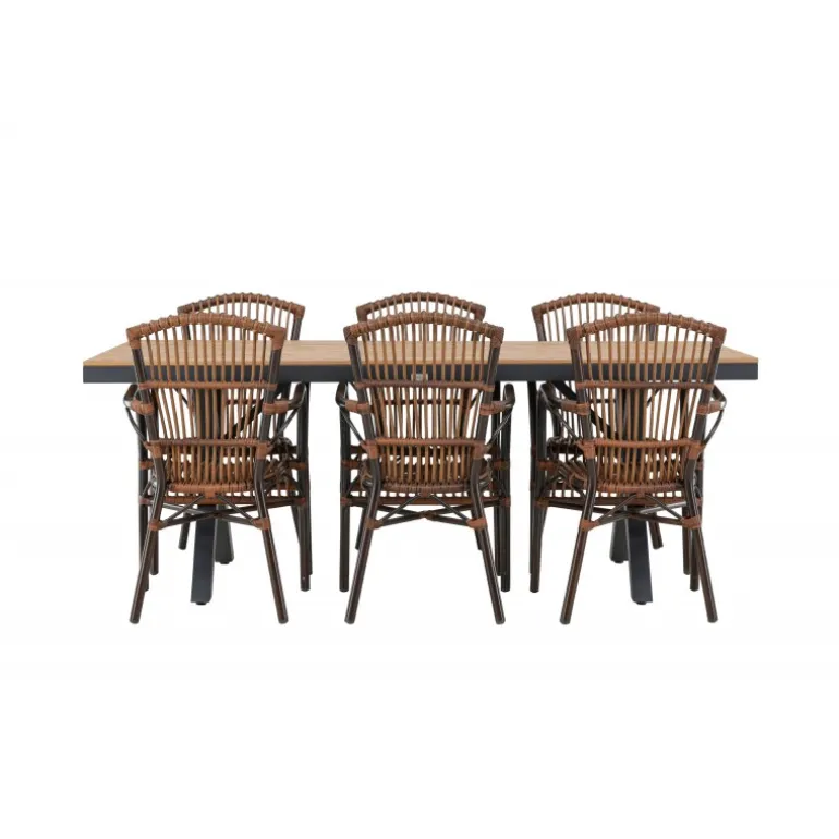 - Stilfulde stole: Galera-stole med brune rattan-sæder og aluminiumsben for stabilitet.