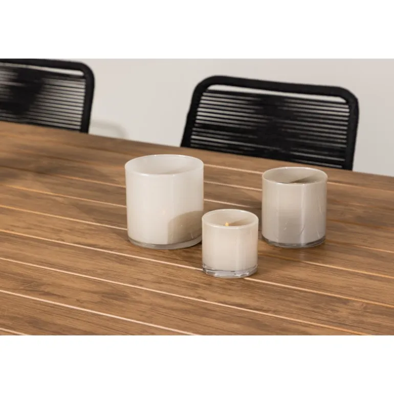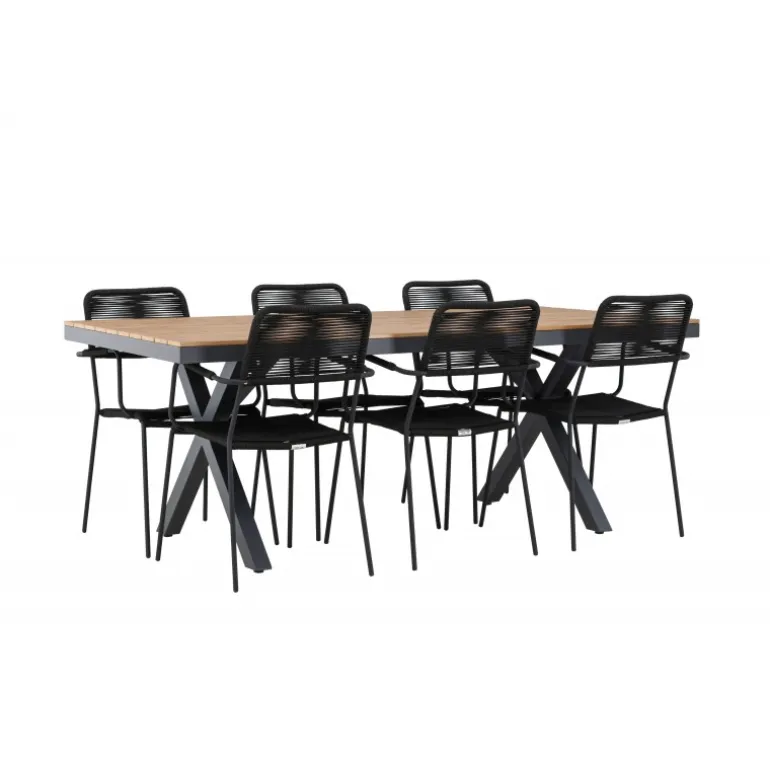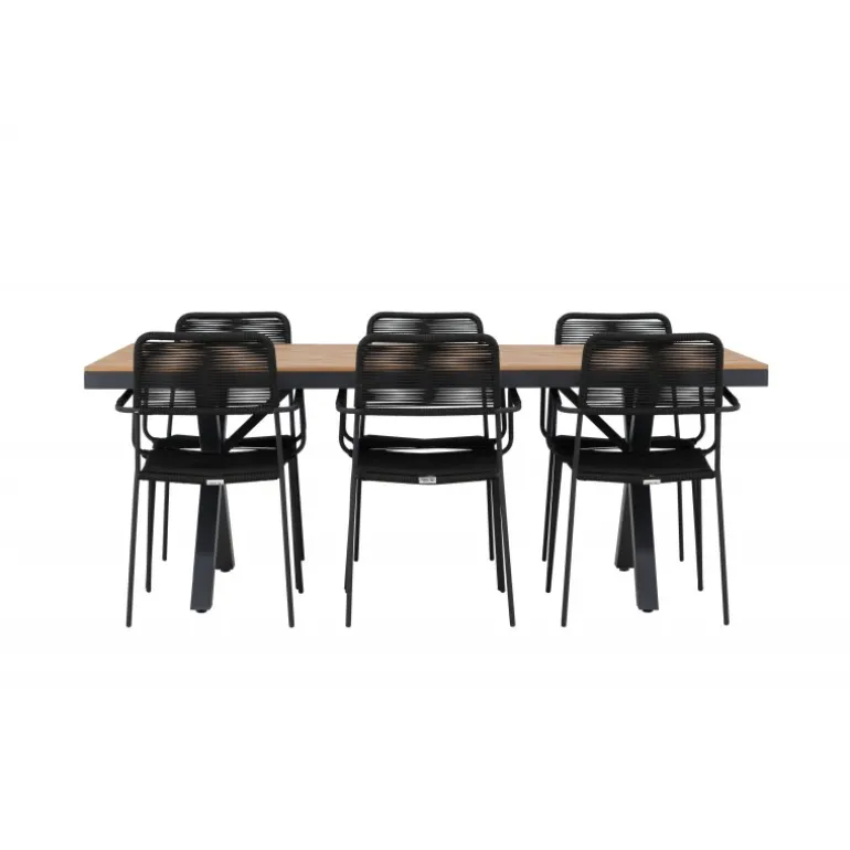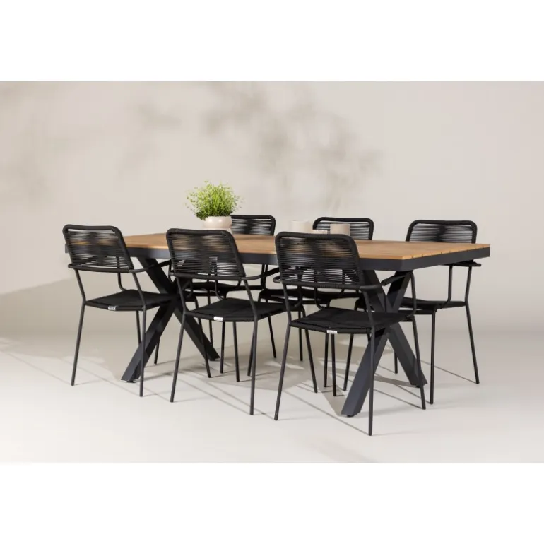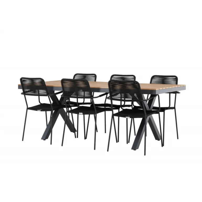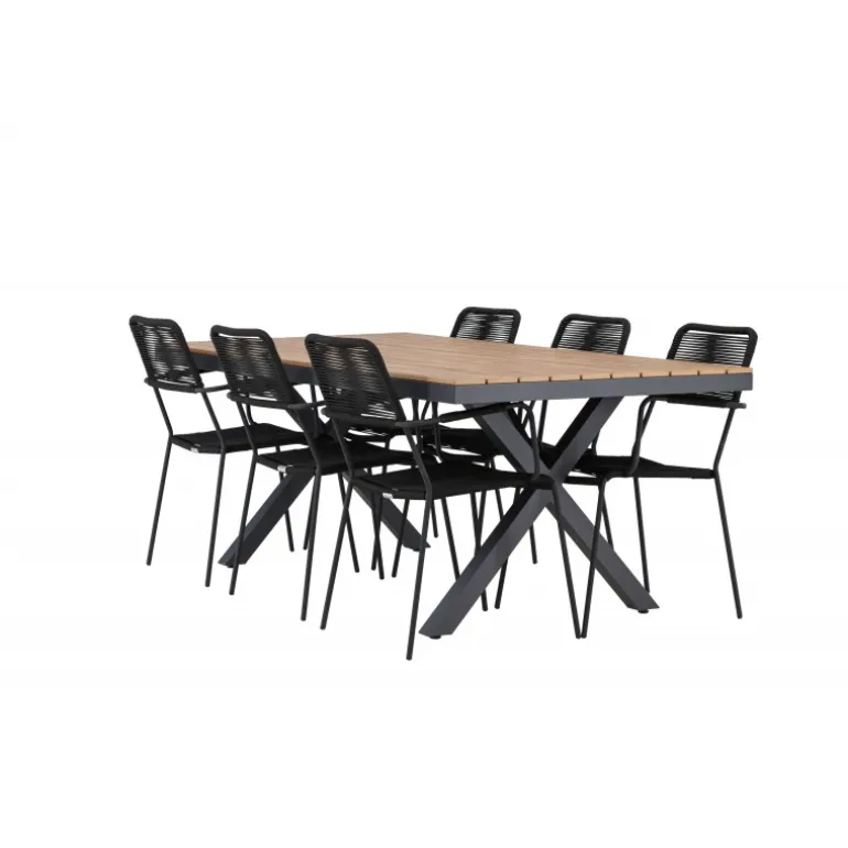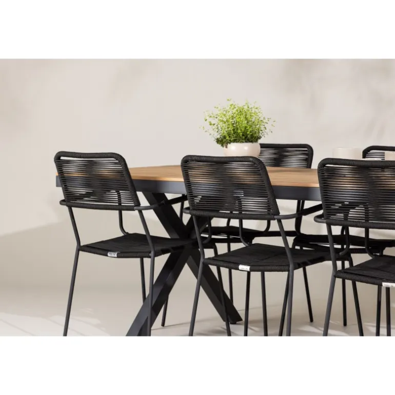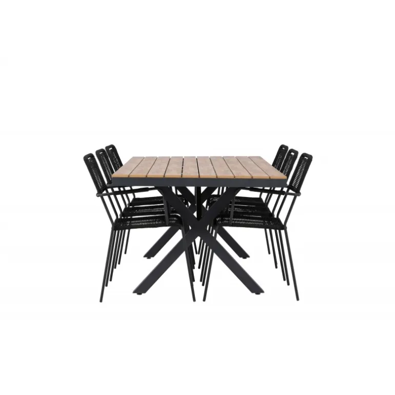 Opdag det perfekte Loungesæt – Havemøbelsæt til dit udendørsområde med vores elegante ensemble, bestående af Garcia-bordet og Lindos-stolene. Garcia-bordet er midtpunktet for din udendørs spiseoplevelse og har generøse dimensioner på 100×200 centimeter. Fremstillet af aluminium i en smuk brun nuance, udstråler dette bord en stil, der problemfrit blander sig med dit udendørs miljø. Lindos-stolene supplerer Garcia-bordet perfekt. Konstrueret med reb og stålben i en elegant sort farve, tilbyder disse stole både stil og komfort til din udendørs afslapning. Med seks stole inkluderet er dette Loungesæt – Havemøbelsæt ideelt til at samle familie og venner til mindeværdige øjeblikke under åben himmel. Skab den perfekte atmosfære for måltider og afslapning i dit udendørsområde med vores Garcia og Lindos Loungesæt – Havemøbelsæt.