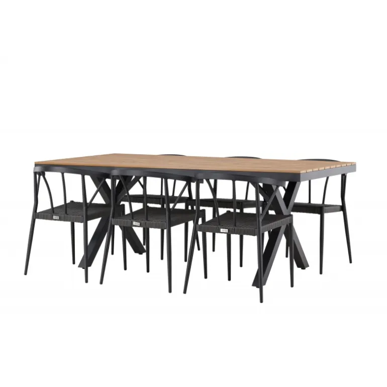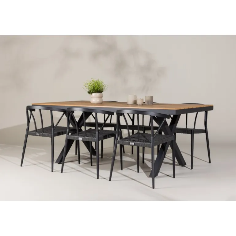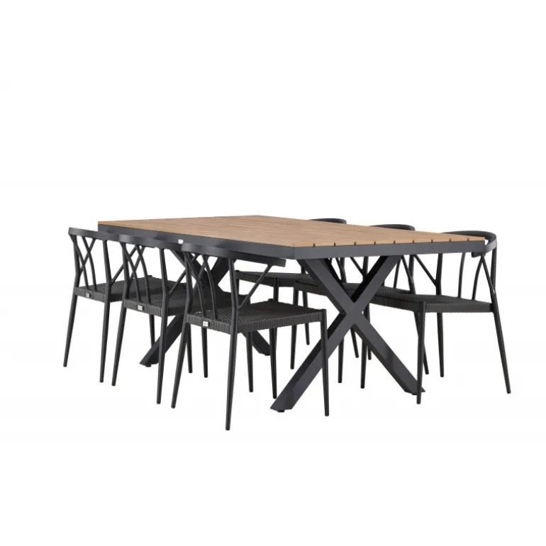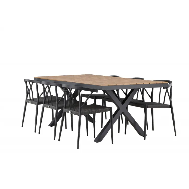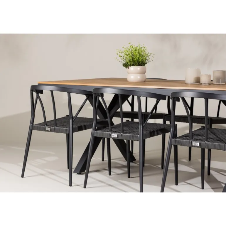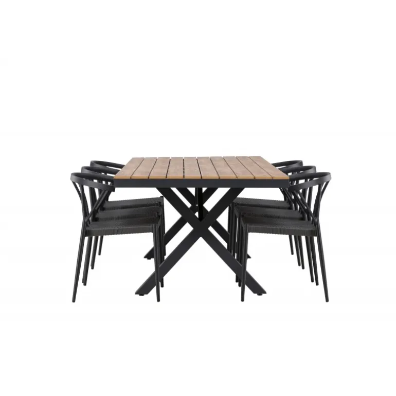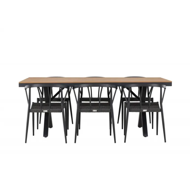 Oplev den perfekte balance mellem stil og funktionalitet med vores udendørs Loungesæt – Havemøbelsæt, Garcia og Stina. Skabt til at løfte din udendørs oplevelse, kombinerer dette Loungesæt – Havemøbelsæt moderne design med holdbare materialer for enestående komfort og æstetik. Bordet, Garcia, er en imponerende skabelse, der måler 100×200 cm. Fremstillet af aluminium, tilbyder dette bord en stabil og pålidelig overflade til dine udendørs måltider. Den varme brune farve giver en jordnær følelse, der smelter problemfrit sammen med omgivelserne og tilføjer et strejf af elegance til dit udendørs rum. Stolene, navngivet Stina, er et perfekt supplement til Garcia-bordet. Lavet af holdbart fletmateriale i en sofistikeret sort nuance, tilbyder disse stole både komfort og stil. Med seks stole inkluderet i sættet, kan du nemt byde familie og venner velkommen til hyggelige udendørs middage og sammenkomster. Trendy, neutrale og gennemtænkt designet, er vores Garcia og Stina Loungesæt – Havemøbelsæt en investering i kvalitet og stil for din udendørs livsstil. Oplev luksusen ved udendørs spisning med dette elegant udformede Loungesæt – Havemøbelsæt, der giver dig det perfekte sted at samles og skabe minder under åben himmel.