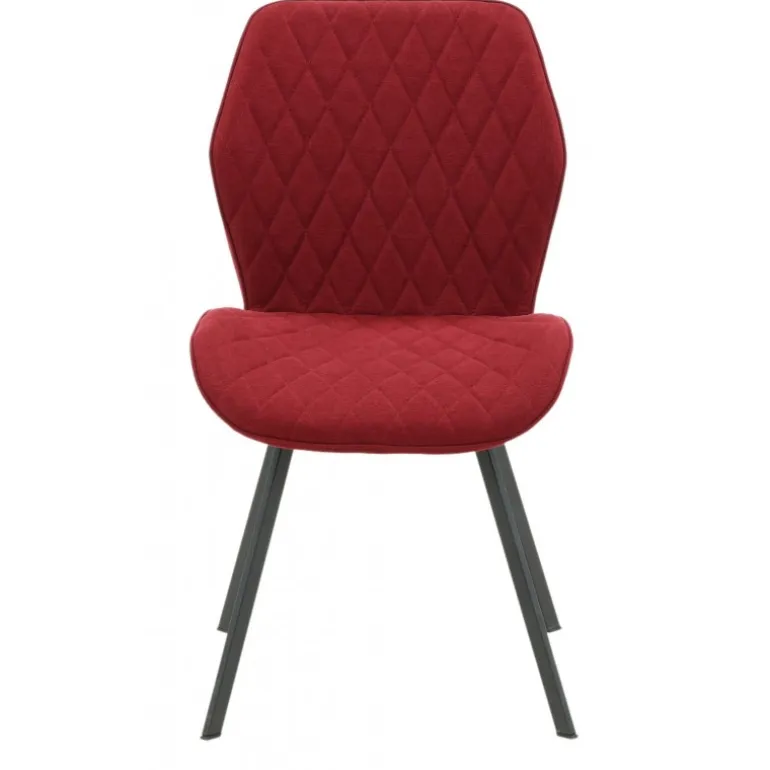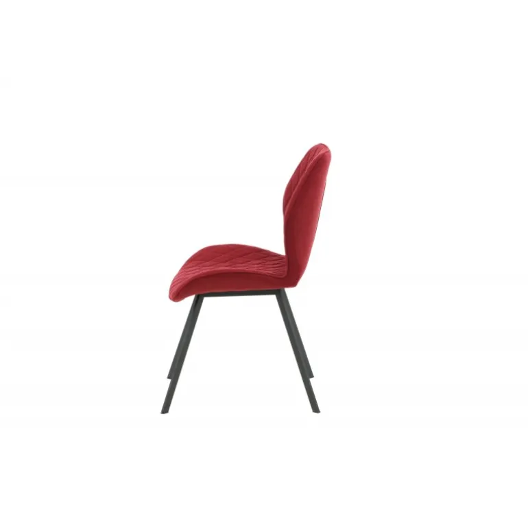 En lækkert farveklik gør hverdagen bedre! Gemma er en spisebordsstol med alt det rigtige – praktisk, stilfuld og tidløs! I et fuldt beklædt eksklusivt design med ben i sort pulverlakeret metal og en ryg og sæde i en skålformet design i mørkerød polyesterstof, får du en stol med høj komfort. Dekorative syninger på indersiden af ryggen og sædet, der danner et pænt gittermønster. Lettere samling kræves. Plejeanvisning: Brug tekstilspray for at imprægnere tekstilet, før du begynder at bruge det, det vil også gøre eventuel snavs og pletter lettere at fjerne i fremtiden. Fjern pletter med det samme, gnid ikke, men forsøg at suge forsigtigt op med en klud.