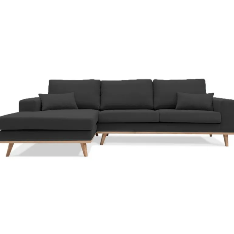 Genova sofa med venstrevendt chaiselong i lækkert stilrent design. En sofa hvor der ikke er sparet på materialerne. Løse sædehynder af 30 kg. koldskum, som sikrer en god og fast siddekomfort mange år frem. Under sofaen er et understel af olieret egetræ monteret, med smukke åretegninger og en gylden glød. SIMONE sofaen er til dig, som går op i kvalitet og som nyder naturens smukke ynde.