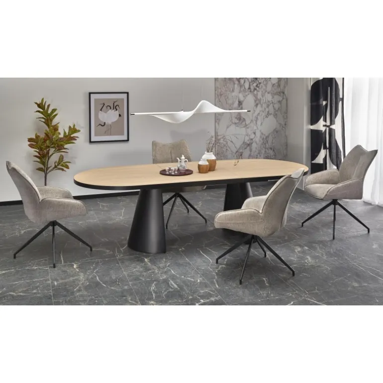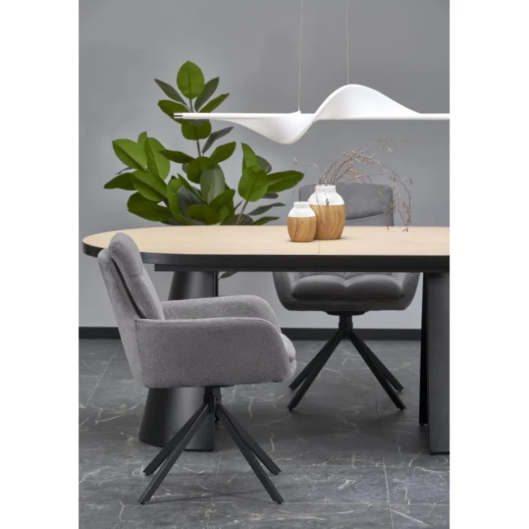 Oplev elegance og funktionalitet med GIACOMO bord natur/Sort. Dette udtrækkelige bord tilbyder fleksibilitet til både hverdag og festlige anledninger. Med dimensionerne 180-240/100/76/78 cm kan du nemt justere bordets størrelse efter behov. Bordpladen er fremstillet af lamineret MDF med melamin, hvilket sikrer holdbarhed og nem vedligeholdelse. De pulverlakerede stålben i Sort tilføjer et moderne touch, som vil passe perfekt ind i ethvert hjem.