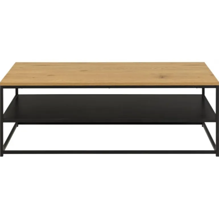 Gila sofabord bordplade melamin mat vild eg, hylder melamin sort, 1 stk, stel metal pulverlakeret ru mat sort L:120 B:60 H:42 cm
