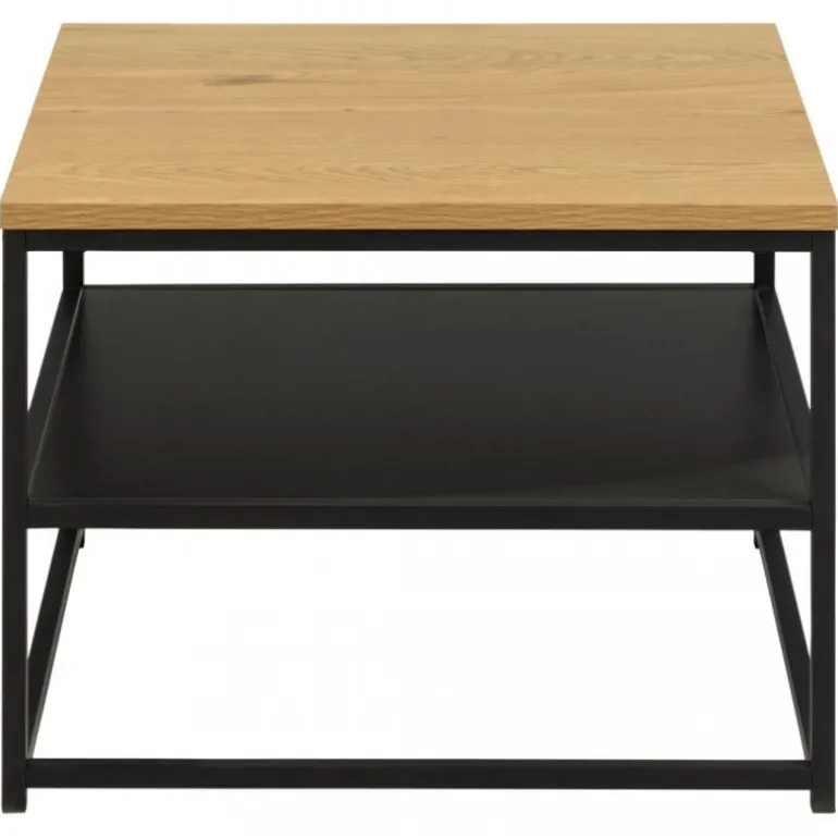 Gila sofabord bordplade melamin mat vild eg, hylder melamin sort, 1 stk, stel metal pulverlakeret ru mat sort L:55 B:55 H:42 cm