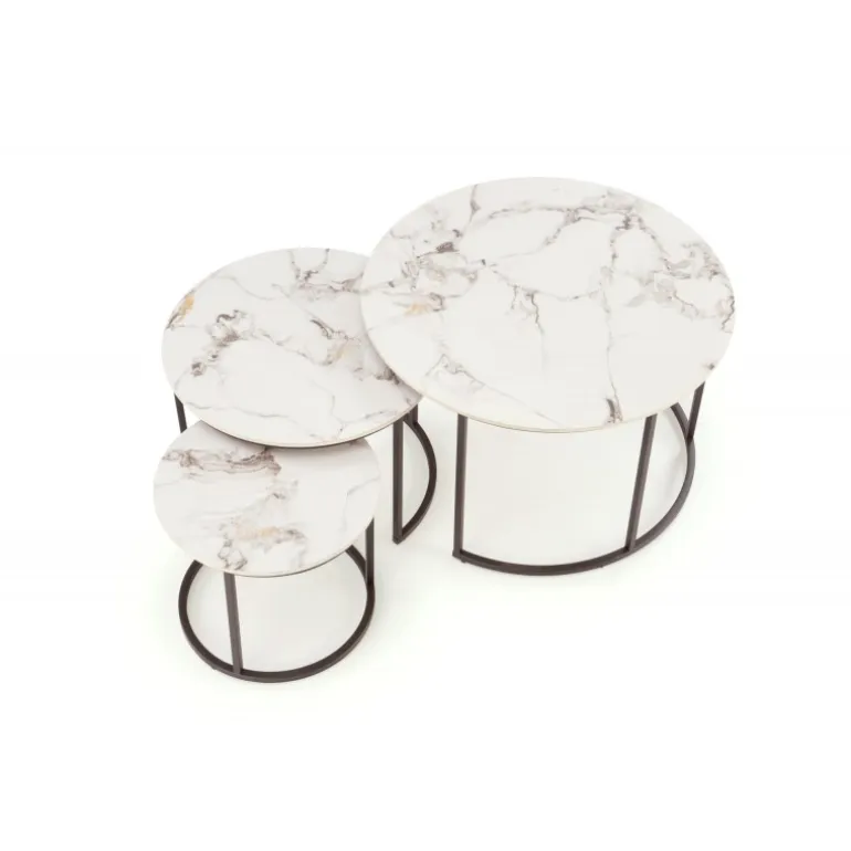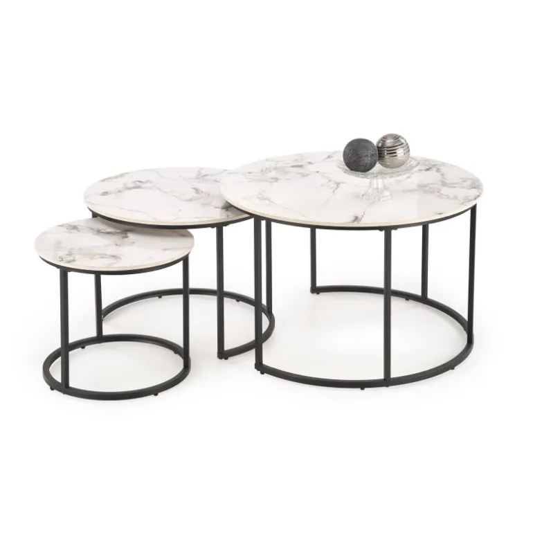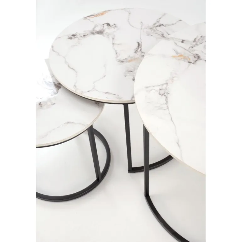 GILDA sæt med tre sofaborde kombinerer stil og funktionalitet i et elegant design. Med hvid marmor overflader og Sort pulverlakeret stål rammer, tilføjer dette sæt en sofistikeret touch til ethvert rum. Sæt med tre gør det nemt at tilpasse enhver indretning og opfylde forskellige behov. Dimensionerne er 80/50 cm, 60/45 cm og 45/40 cm.