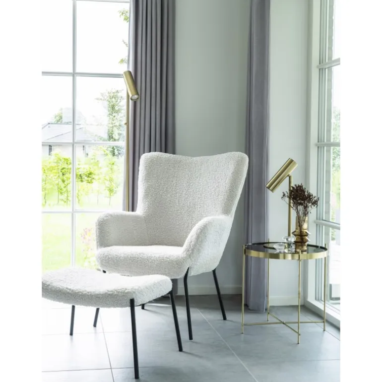 Glasgow Fodskammel – Fodskammel i hvid kunstig lammeskind med sorte ben