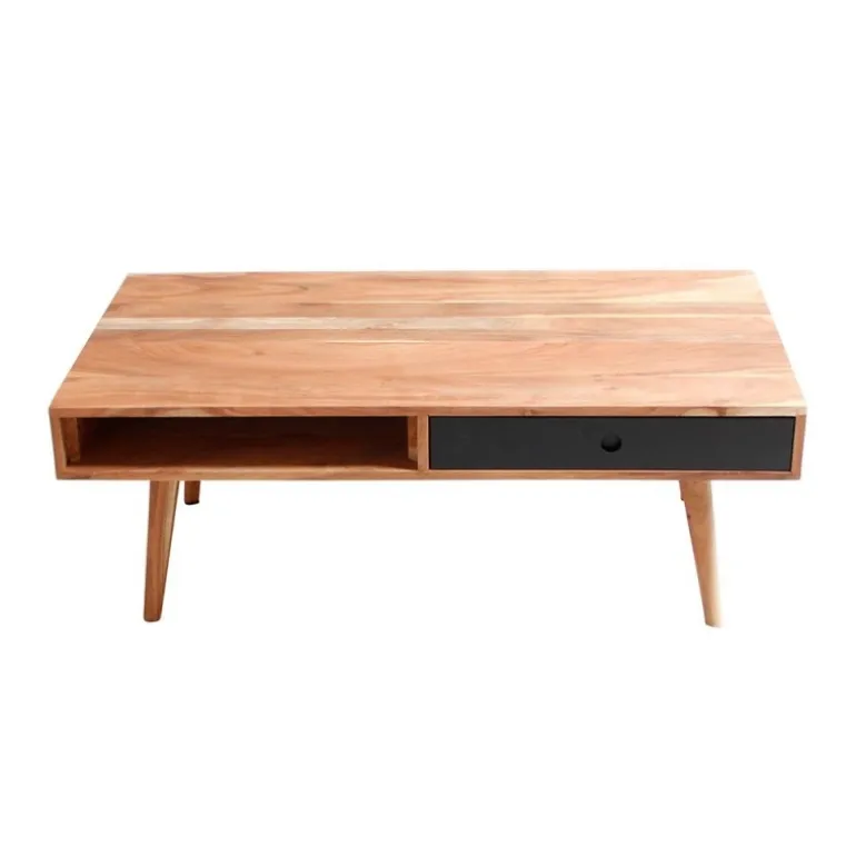 Sofabord med opbevaring under bordpladen. Bordet hviler stabilt på skrå træben og er udført i et moderne retroinspireret design, der emmer af varme og patina.
