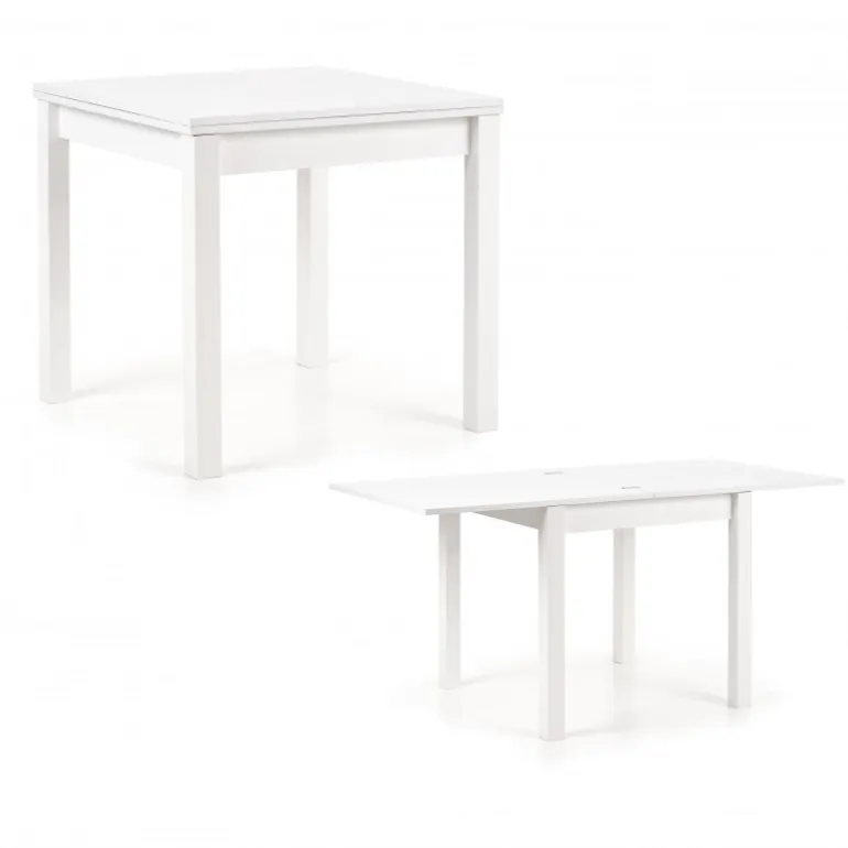 GRACJAN Bord er den perfekte løsning til din spisestue eller køkken. Dette Spisebord med udtræk giver dig fleksibilitet til at tilpasse bordets størrelse efter dine behov. Med dimensionerne 80÷160/80/76 cm passer det både til små og større sammenkomster. Bordpladen er lavet af lamineret møbelplade, hvilket gør den både holdbar og nem at rengøre. Kanterne er forstærket med ABS-plastik, og benene er lavet af lamineret MDF i en elegant hvid farve. Dette bord kombinerer funktionalitet med et stilrent design, der passer ind i ethvert moderne hjem.
