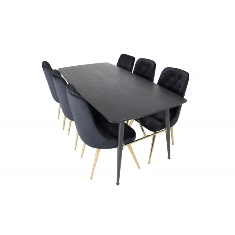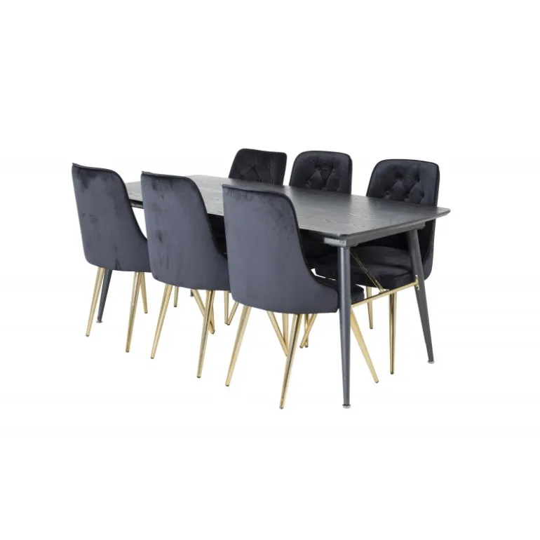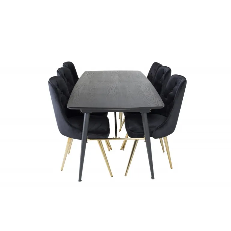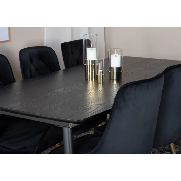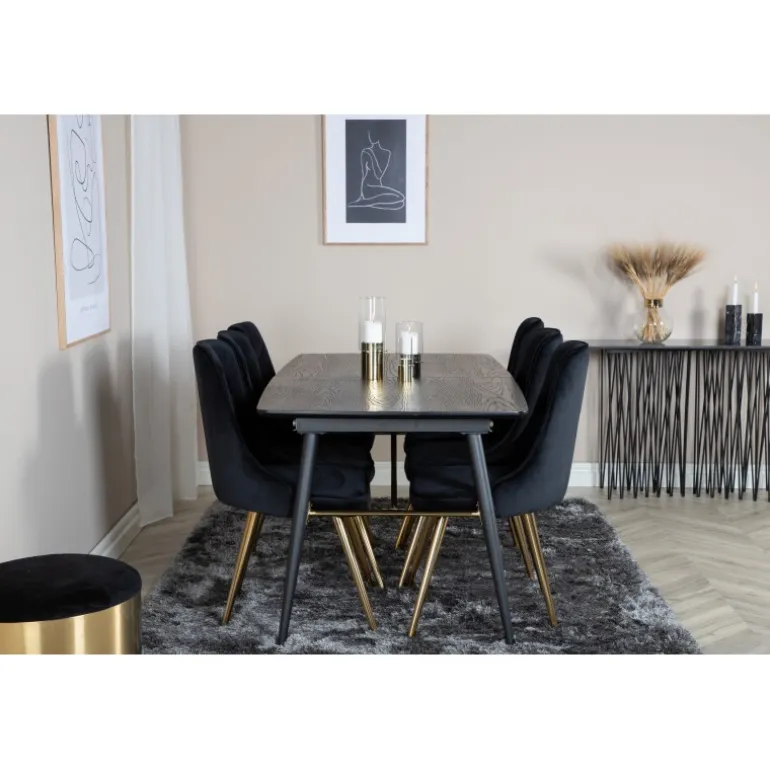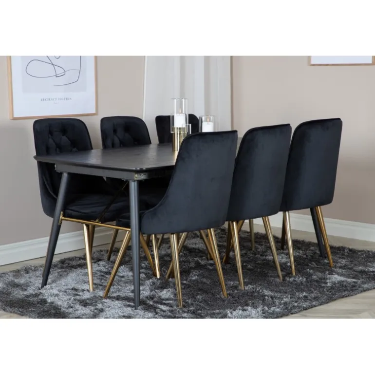 Køb af en færdigkomponeret Spisebordssæt er både trendsikkert og praktisk! Her kombinerer vi vores udvidelige spisebord Gold med vores komfortable sorte spisebordsstole Velvet. Lad hjemmets hjerte blive karakteriseret af dit nye iøjnefaldende Spisebordssæt.