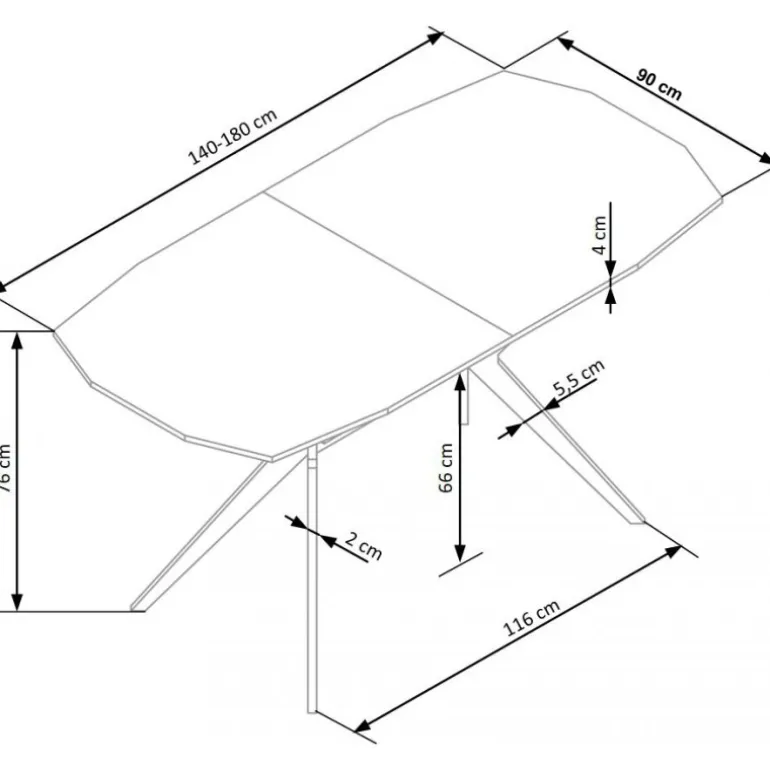 - Størrelse: Dimensioner 140-180/90/76 cm.