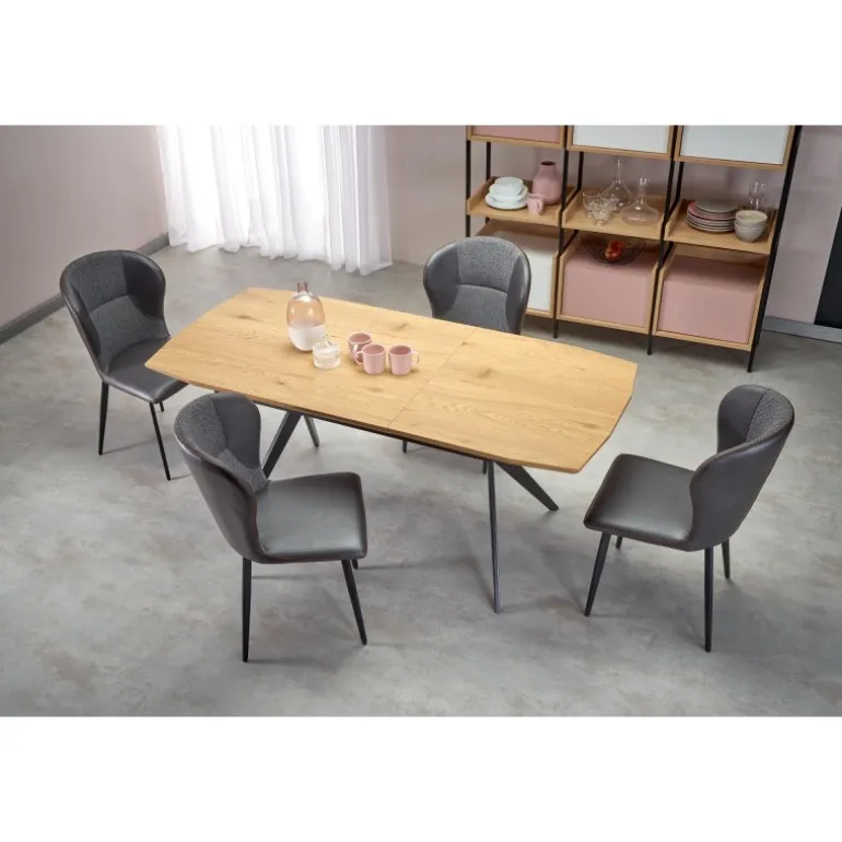 Oplev elegance og funktionalitet med GUSTAVO bord gylden eg/Sort. Dette smukke Spisebord med udtræk er perfekt til både hverdagsbrug og specielle anledninger. Med dimensionerne 140-180/90/76 cm tilbyder dette bord fleksibilitet og plads til alle dine behov. Bordpladen er lavet af lamineret MDF i en smuk gylden eg farve, mens benene er pulverlakeret stål i en stilfuld Sort farve. Det robuste design sikrer langvarig holdbarhed og stabilitet.
