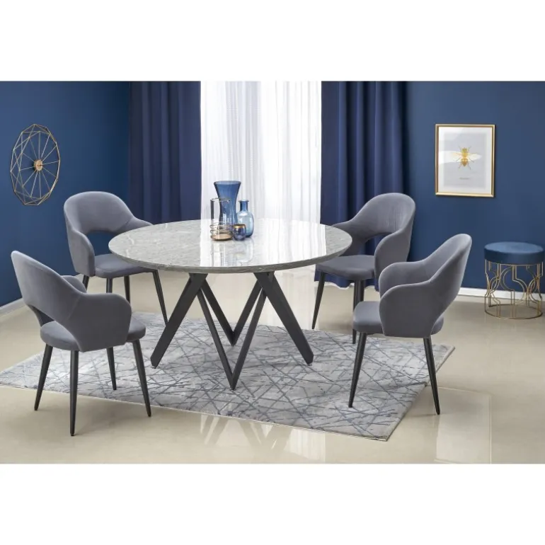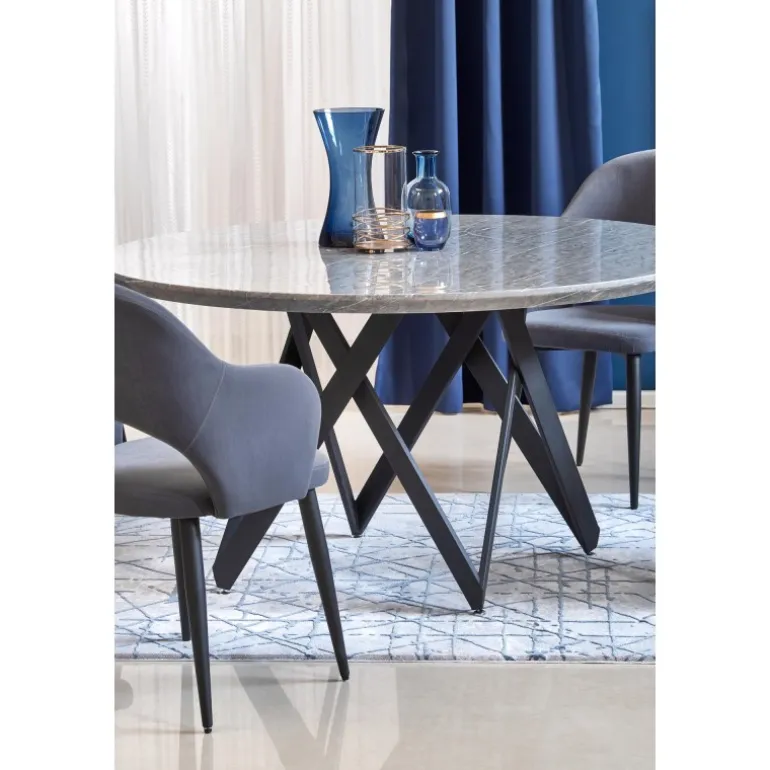 Oplev det elegante GUSTIMO bord med sin moderne og stilfulde design. Dette bord er fremstillet af lamineret MDF og pulverlakeret stål, hvilket giver både holdbarhed og et sofistikeret udseende. Den grå marmorerede bordplade kombineret med Sorte ben skaber en luksuriøs stemning i ethvert rum. Med dimensionerne Ø140/77 cm passer dette bord perfekt til både spisestuer og opholdsstuer. Køb GUSTIMO bordet og tilføj et strejf af elegance til dit hjem.