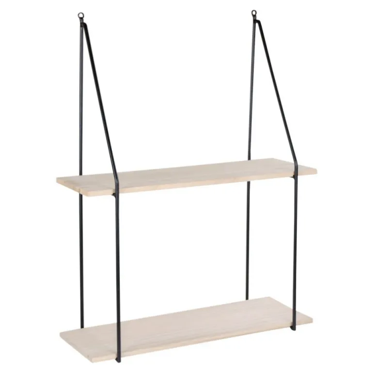 hylde med sort ramme og 2 træ hylder