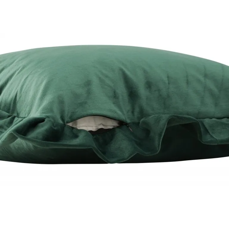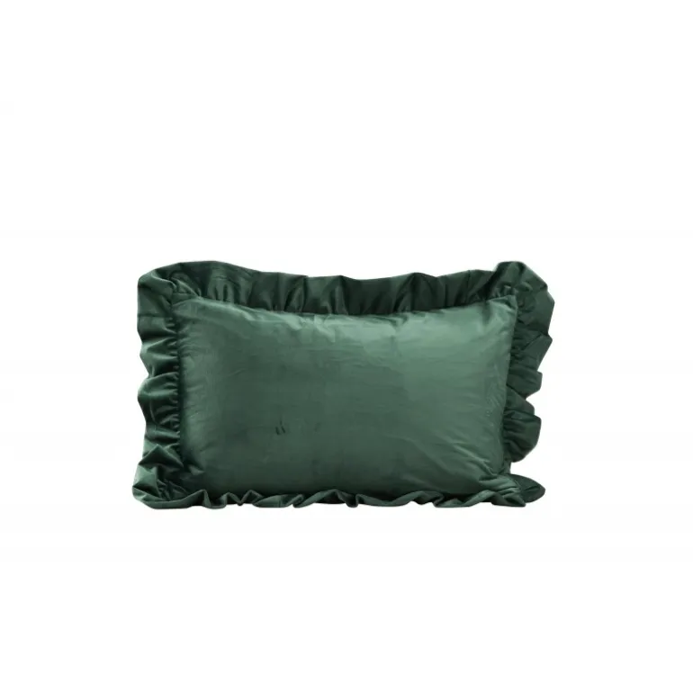 Hailey pudebetræk i skovgrøn farve skaber hurtigt en elegant og personlig blikfang i dit hjem! Hailey pudeserien tilbyder kvalitets pudebetræk i forskellige størrelser og farver – alt for bedst at opfylde dine ønsker og interiørstil. Pudebetrækket er indrammet af en dekorativ flæsekant og har en skjult lynlås på bagsiden. Det slanke velourstof giver en lækker glans til puden og fremhæver den smagfulde grønne farve på bedste vis!