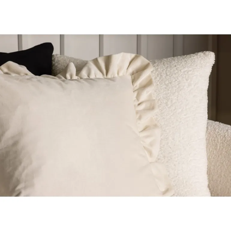 Skab et charmerende indtryk i sofaen eller soveværelset med en stilfuld velourpude fra Hailey-serien! Hailey-serien tilbyder kvalitets pudebetræk i forskellige størrelser og farver – alt for at bedst passe til dine ønsker og din indretningsstil. Pudebetrækket er indrammet af en dekorativ flæsekant og har en skjult lynlås på bagsiden. Velourstoffet giver en lækker glans til puden og får den cremehvide farve til at fremhæve på bedste vis!