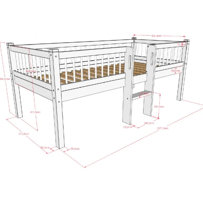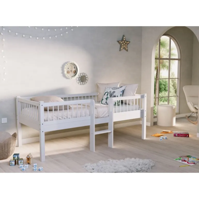 Halvhøj seng 90 x 200 cm – Forrest Bøg, hvid