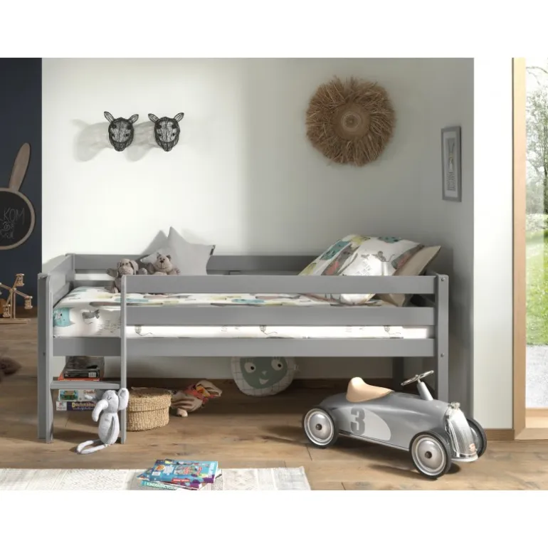 Halvhøj seng 90 x 200 cm – Pino, grå