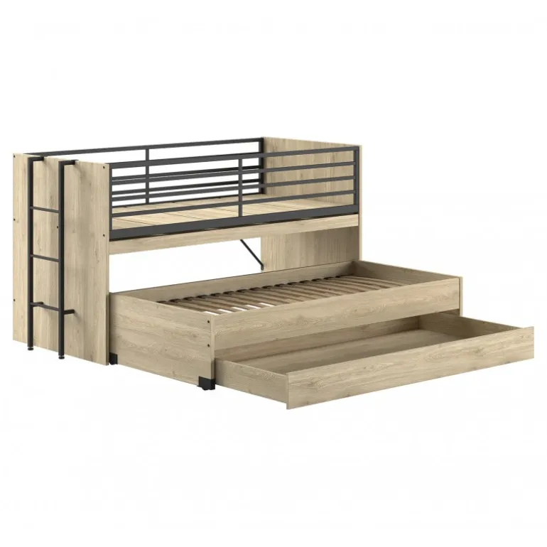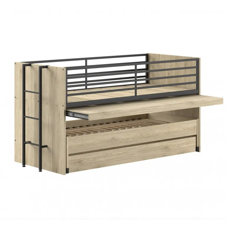 Halvhøj seng 90 x 200 – Sam i eg med udtræksskrivebord