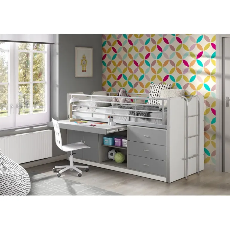 Halvhøj seng 90×200 med skrivebord – Bonny, grå