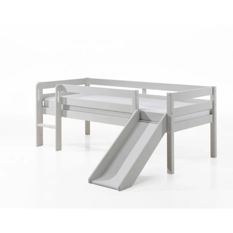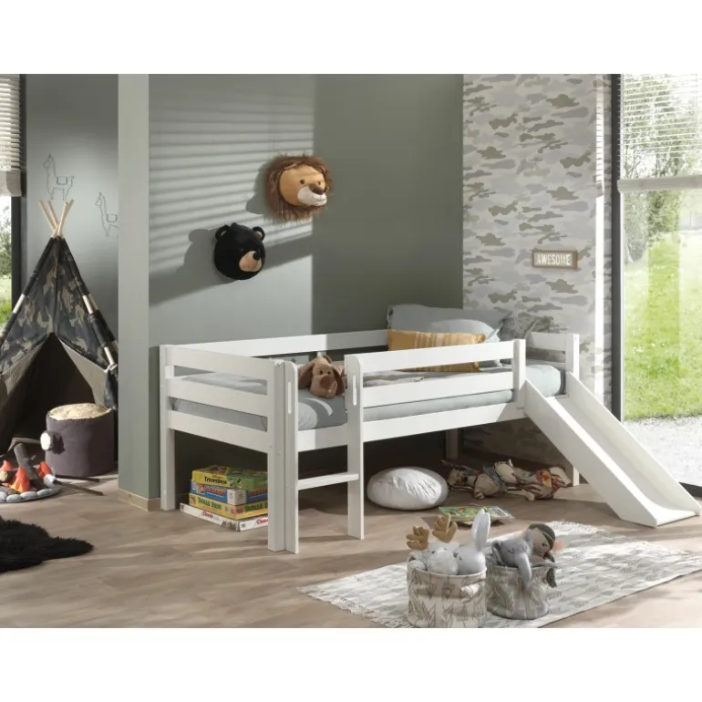 Halvhøj seng med rutsjebane 90 x 200 cm – Pino, hvid