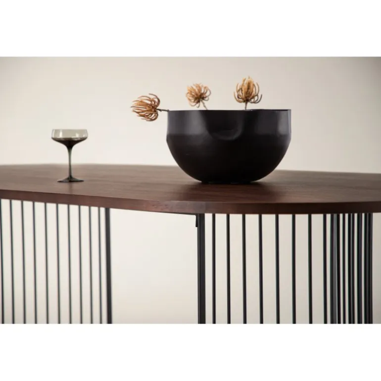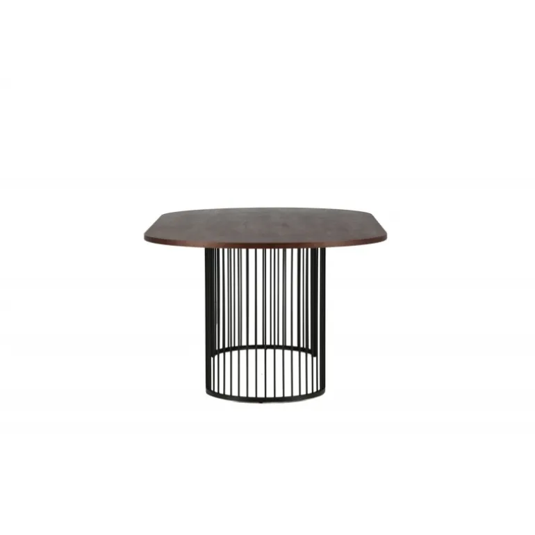 Skab en indbydende og stilfuld atmosfære i hjertet af dit hjem med et iøjnefaldende spisebord fra Hamneskar-serien! Dette elegante bord har en oval bordplade i mørkt træ og en dekorativ underdel i smal, sort stålstruktur formet som to halvcirkler. Her behøver du ikke at gå på kompromis mellem praktisk og elegant design. Match det med et par stilfulde spisebordsstole, og du får den perfekte Spisebordssæt til alle ugens måltider!