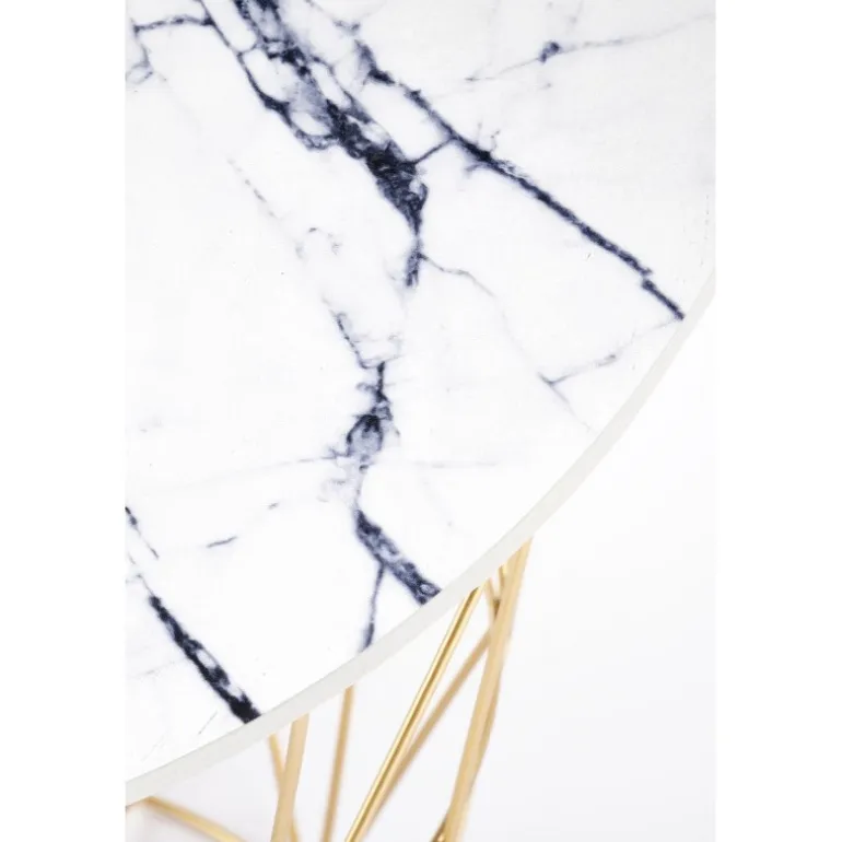 - Stilfuldt design: Guld ramme og hvid marmorbordplade giver et luksuriøst look.