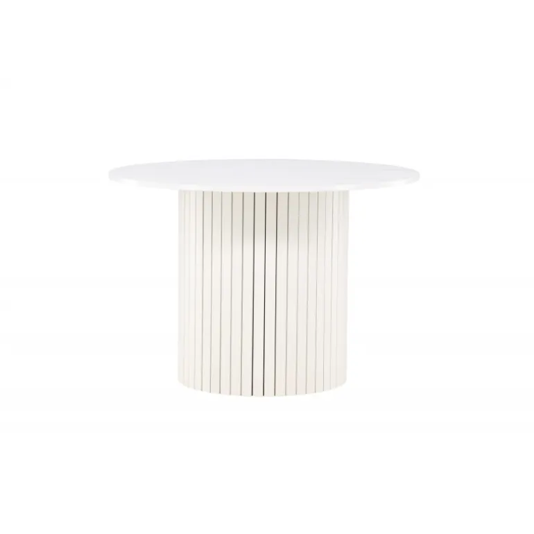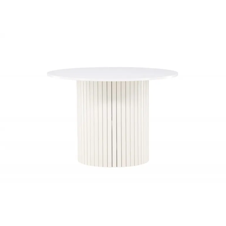 Oplev den enkle skønhed ved vores Haron spisebord. Med en generøs diameter på 110 cm er dette spisebord perfekt til at samle familie og venner til hyggelige måltider og samtaler. Haron spisebordet har et slankt design i hvid farve, der skaber en lys og luftig følelse i dit rum. Fremstillet af MDF-materiale, tilbyder dette bord tilstrækkelig stabilitet til daglig brug. Den runde form gør det nemt at skabe en intim og indbydende atmosfære ved spisebordet. Uanset om det er til hverdagens måltider eller særlige lejligheder, bliver Haron spisebordet et perfekt sted for fællesskab og delte øjeblikke. Giv dit hjem den enkle elegance, det fortjener med Haron spisebordet.