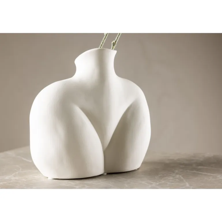Harvey er ikke bare en vase – det er en kunstnerisk hyldest til den kvindelige form. Med sin unikke efterligning af den kvindelige krop bliver denne vase et iøjnefaldende og samtalestartende element i dit hjem. Fremstillet af stentøj og præsenteret i en forførende hvid nuance, er Harvey mere end blot en beholder til blomster; det er en smuk skulptur, der tilføjer en kunstnerisk dimension til din indretning. Med en højde på 15 cm er Harvey en diskret, men betydningsfuld dekoration. Dens legende og smukke form gør den til en unik kunstnerisk detalje, der vil tiltrække opmærksomhed og beundring. Placer Harvey på et fremtrædende sted i dit hjem for at give dit rum et dristigt og kunstnerisk præg. Uanset om du vælger at fylde den med blomster eller lade den stå alene, vil Harvey være et visuelt højdepunkt, der giver dit rum et unikt og personligt touch. Lad Harvey være et smukt kunstnerisk udtryk i dit hjem. Dens unikke design og hvide matte finish gør den til en elegant og moderne fortolkning af kunst og interiørdesign. Harvey er mere end en vase; det er en kunstnerisk skabelse, der vil forstærke skønheden i dit hjem på en unik og mindeværdig måde.