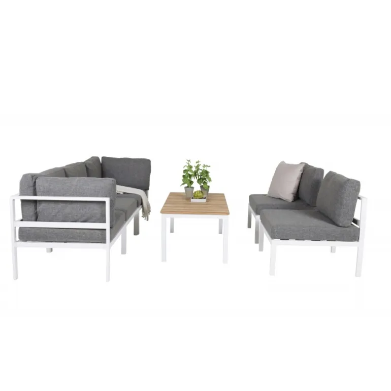Sofa Sæt Copacabana er en moderne og stilfuld løsning til din terrasse. Dette sæt består af en sofa, der kan omdannes til en hjørnesofa eller bruges som en sofa med to tilhørende lænestole. Et sofabord fra Brasilia serien er inkluderet i sættet. Grå, bløde og godt polstrede hynder medfølger. Skab et hyggeligt område med masser af plads til socialt samvær!