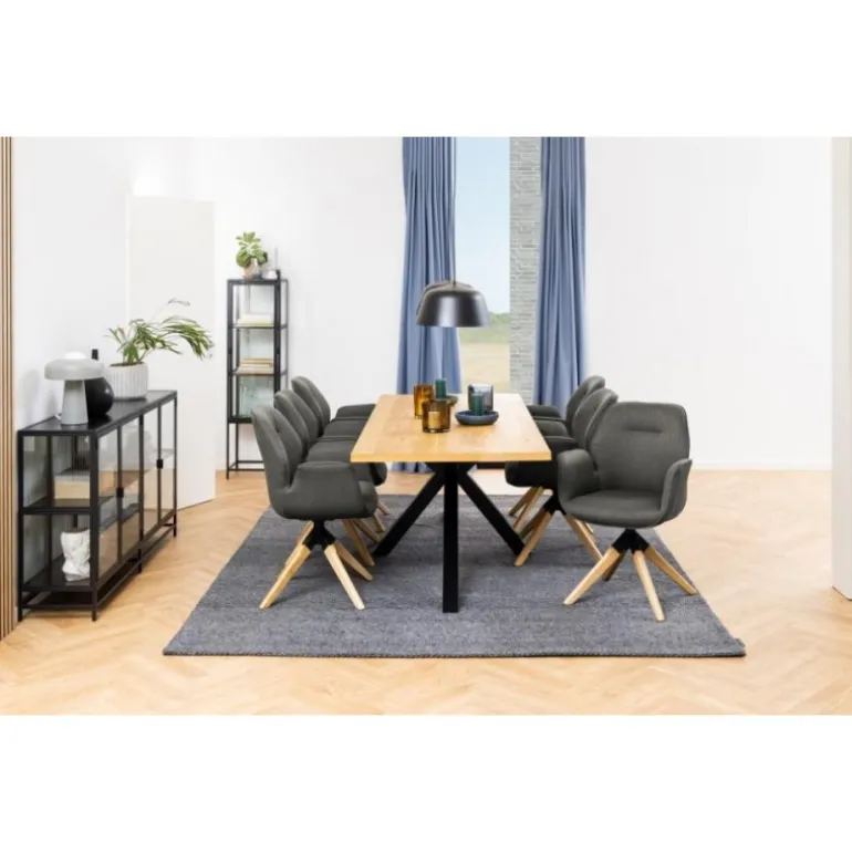 Heaven rektangulær spisebord, Top vild eg olieret egefiner, kryds Stel mat sort ru pulverlakeret stål, 220x90x75,5 cm