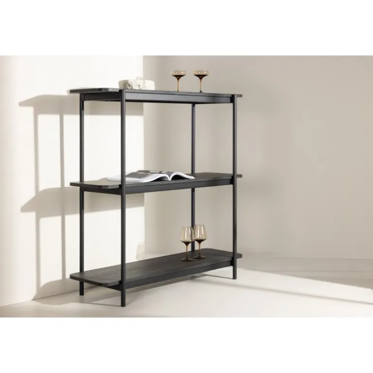 Produktet er FSC® certificeret (FSC®C177288), hvilket betyder, at det består af træ fra ansvarligt forvaltede skove, skove der tager hensyn til både mennesker og miljø. Indret dit hjem smart og stilfuldt med vores sidebord med tre hylder fra Heim-serien! Denne hylde har en smal, sort stålramme og i alt tre hylder lavet af stilfuldt træ. Det er simpelthen både en visuel perle og en praktisk opbevaringsløsning, der vil gøre livet lettere for dig og dit hjem! Sæt dit personlige præg på indretningen. Med afrundede kanter og nøje designede hylder giver dette bord dig friheden til at udtrykke din stil ved at dekorere med ting, der betyder noget for dig. Tilføj dine yndlingsdekorationer, planter der bringer liv, lysestager til hyggelige aftener og bøger der afspejler din smag. Den slanke bredde og stilfulde design betyder også, at dette sidebord passer perfekt i de fleste rum. Placer det i stuen, soveværelset eller hvorfor ikke i den større gang, så du kan blive budt velkommen hjem hver dag. Kun fantasien sætter grænser, og det er dig, der bestemmer!