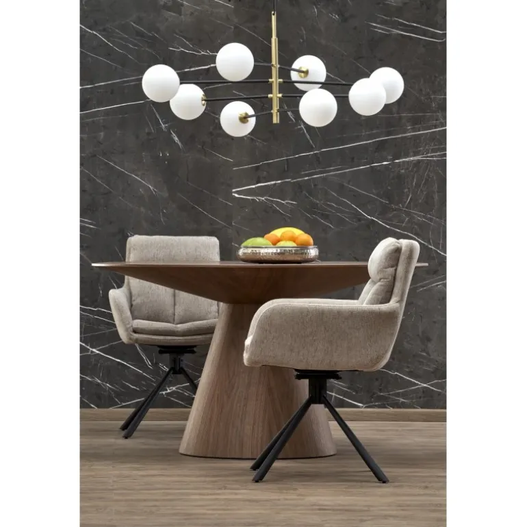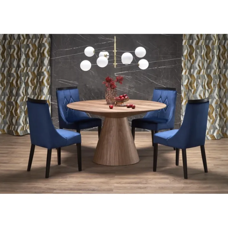 Oplev elegance og funktionalitet med HENDERSON rundbord i valnød. Dette bord er designet til at være både stilfuldt og holdbart, hvilket gør det til det perfekte valg til enhver spisestue eller stue. Med en diameter på 136 cm og en højde på 78 cm tilbyder det rigelig plads til hyggelige sammenkomster eller arbejdssessioner. Bordet er fremstillet af MDF med en naturlig finer, hvilket giver det et sofistikeret udseende og en robust konstruktion. Den smukke valnødde farve tilføjer varme og karakter til dit hjem.