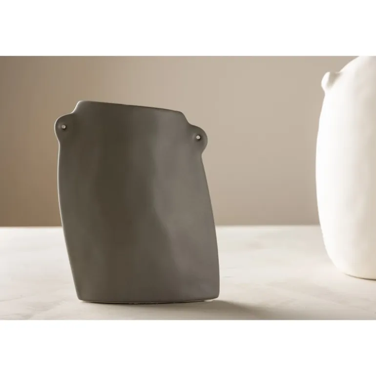 Mød denne tidløse skabelse – en mørkegrå vase med en form, der skiller sig ud fra mængden. Med en højde på 21 cm og en slank åbning til blomster bliver denne vase hurtigt en favorit i dit hjem. Hvad der gør denne vase unik, er ikke kun dens farve, men også dens kreative form. Den slanke åbning giver dig mulighed for at skabe et smukt og kunstnerisk indtryk, der bliver et midtpunkt i hvert rum. For at tilføje ekstra charme har vasen to små håndtag på siderne, hvilket giver den et ekstra strejf af elegance. Eksperimentér med at placere vasen forskellige steder i dit hjem. Denne mørkegrå vase er mere end blot en beholder til blomster; den er i sig selv en kunstnerisk skabelse, der vil fange opmærksomheden og tilføje karakter til hvert rum. Tilfør dit hjem et strejf af kreativitet og stil med denne unikke og elegante vase.