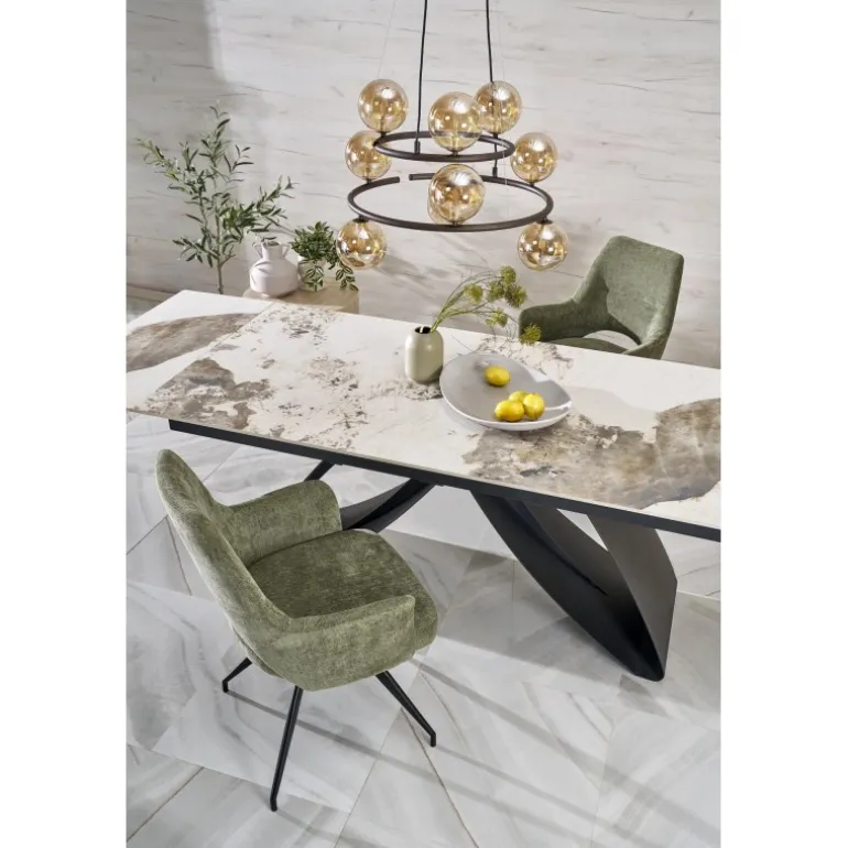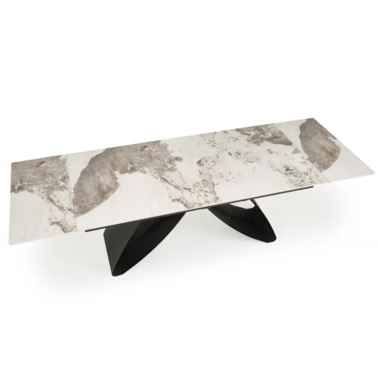Oplev den perfekte kombination af stil og funktionalitet med HILARIO Spisebord med udtræk i beige marmor og Sort. Dette elegante bord er designet til at passe ind i enhver moderne spisestue eller køkken. Lavet af sintret sten og pulverlakeret stål, sikrer det både holdbarhed og nem vedligeholdelse. Med en længde, der kan justeres fra 180 cm til 260 cm, er dette bord ideelt til både små og store sammenkomster. Dets tidløse udseende og høje kvalitet gør HILARIO Spisebord med udtræk til et uundværligt element i dit hjem.
