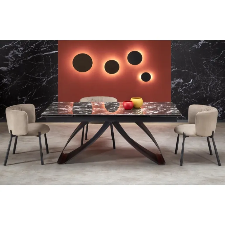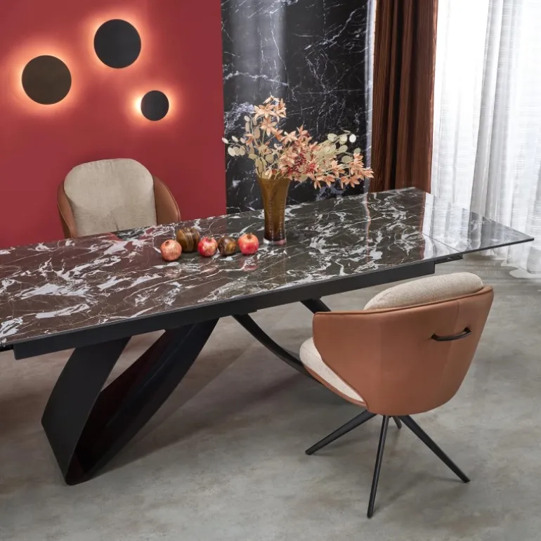 Oplev elegance og funktionalitet med HILARIO Spisebord med udtræk. Dette stilfulde bord er designet til at passe ind i enhver moderne boligindretning. Med en justerbar længde fra 180 cm til 260 cm kan du nemt skabe plads til flere gæster. Bordpladen er fremstillet af holdbar sinteret sten med et elegant Sort marmormønster, mens benene er lavet af robust pulverlakeret stål i Sort. HILARIO Spisebord med udtræk kombinerer estetik og styrke, hvilket gør det til et ideelt valg for både daglig brug og særlige lejligheder.