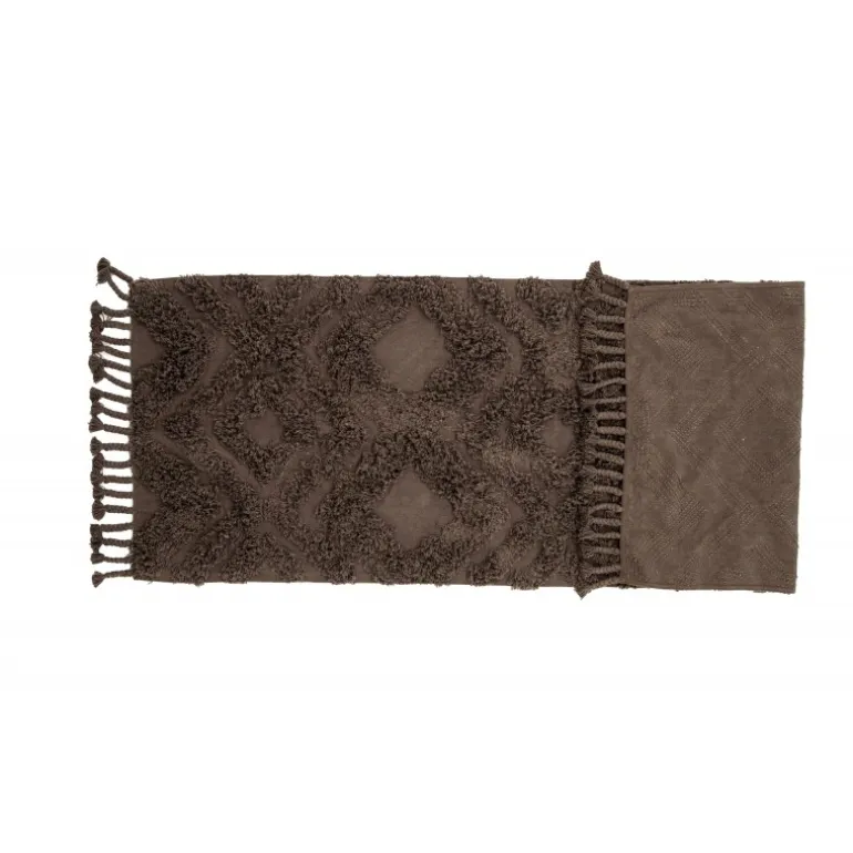 Skab en hyggelig atmosfære i dit hjem med et tæppe, der giver et moderne udseende til interiøret og en varm følelse. Uldtæppet fra Hilma-serien er en lang, smal, rektangulær drøm i moderne vintage, her i en slank brun farve. Tæppet har et tuftet mønster i højere luv og en flettet frynsekant langs de korte sider, der bidrager til et klassisk design kombineret med det trendy. Materialets holdbare egenskaber gør tæppet velegnet til de fleste rum. Placer det alene i gangen eller i stuen for at løfte stilniveauet et par trin! Mål: 200×70 cm.