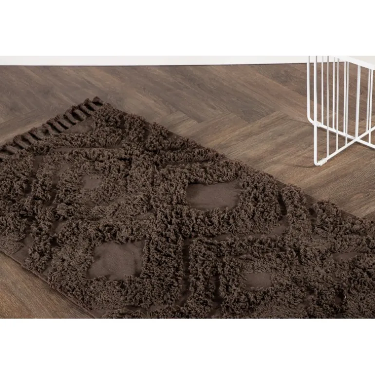 - Moderne vintage design: Slankt brunt tæppe med tuftet mønster.
