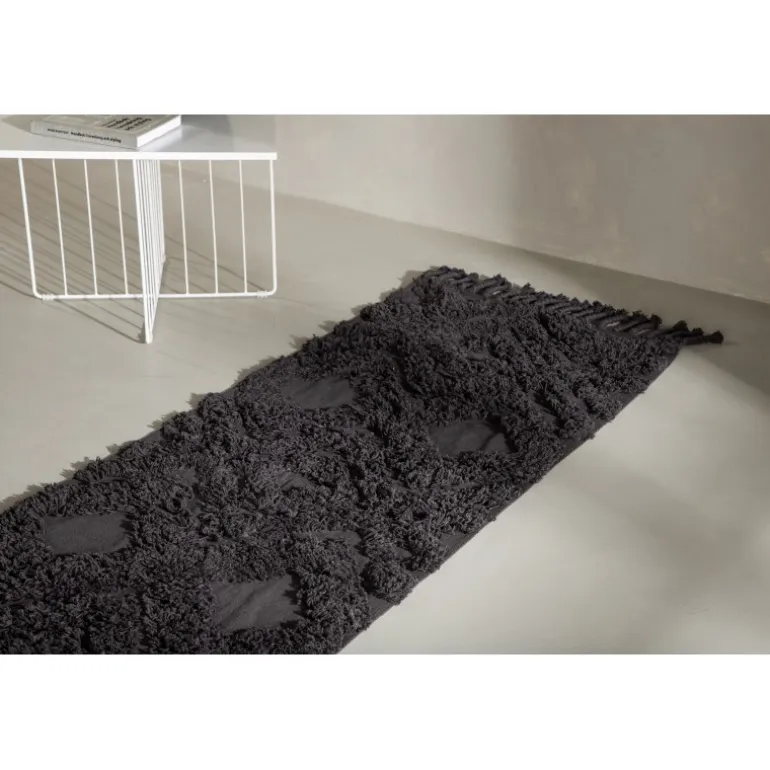 Skab en hyggelig atmosfære i dit hjem med et tæppe, der giver et moderne look til interiøret og en varm følelse. Hilma tæppet fra Hilma-serien er en lang, smal, rektangulær drøm i moderne vintage, her i en sodet mørkegrå farve. Tæppet har et tuftet mønster i højere luv og en flettet frynsekant langs de korte sider, der bidrager til et klassisk design kombineret med det trendy. Materialets holdbare egenskaber gør tæppet velegnet til de fleste rum. Placer det alene i gangen eller i stuen for at løfte stilen et par trin op! Målet er: 200×70 cm.