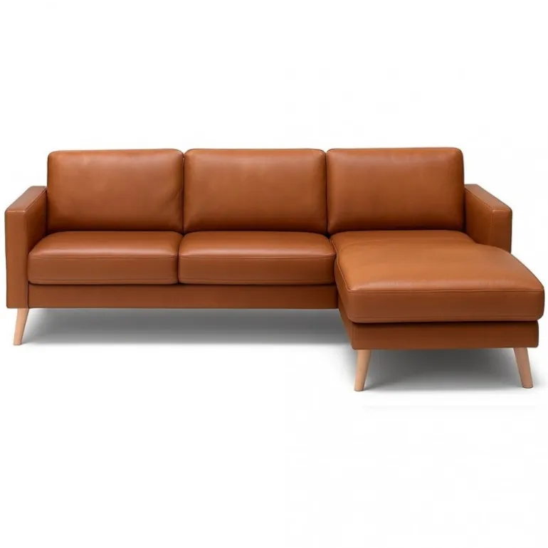 Hjort Knudsen Hvidovre chaiselong lædersofa Højrevendt