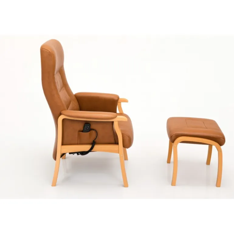 Opbygningen af det kraftige træstel og ”løft op funktionen” til når man skal rejse- eller sætte sig, hvilket gør den ideel til dage med behov for aflastning af kroppen.
