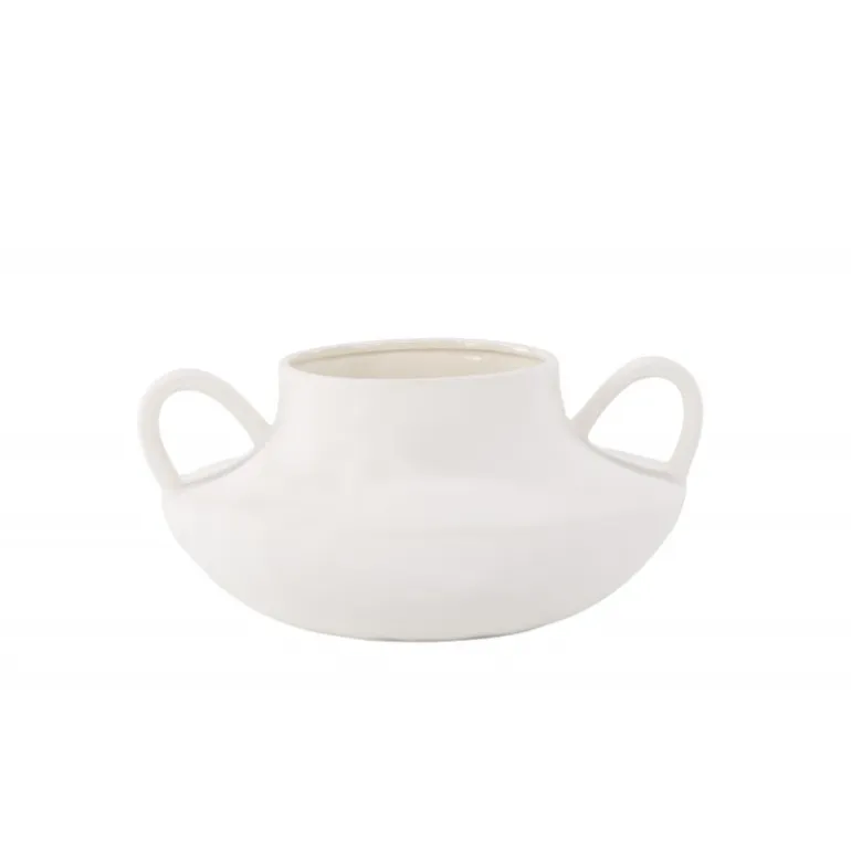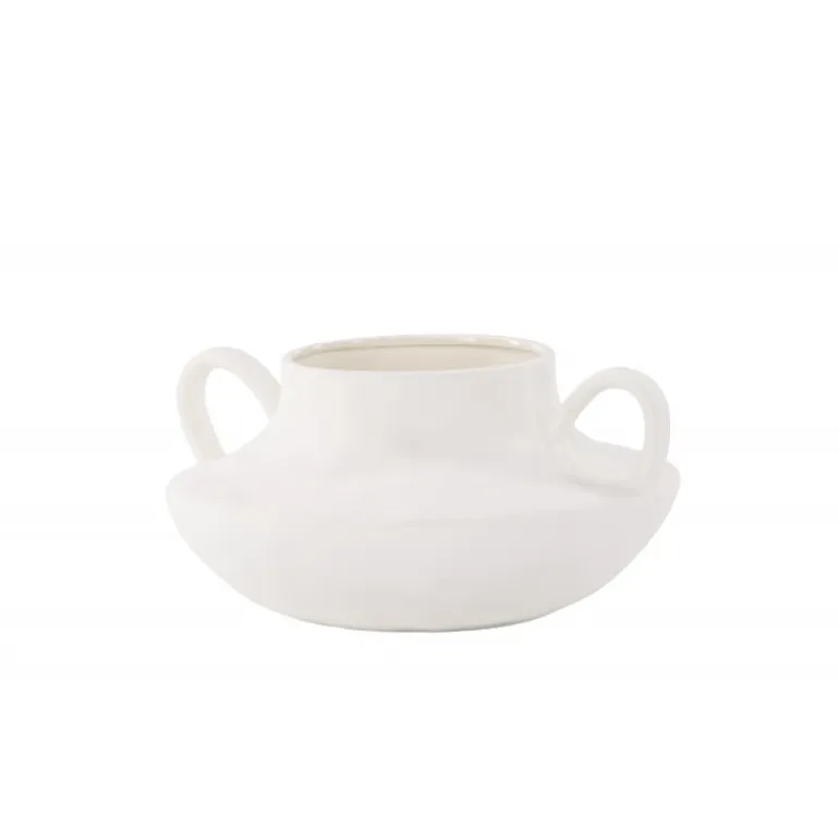 Mød Holda, den elegante hvide keramikkrukke, der tilføjer et strejf af sofistikering til dit hjem. Fremstillet af stentøj, bliver Holda mere end blot en plantekrukke; den transformeres til et stilfuldt udtryk for dine yndlingsblomster. Med sit glatte, runde design og karakteristiske løkker på hver side kombinerer Holda form og funktion problemfrit. Den hvide overflade udstråler elegance, hvilket gør den til et alsidigt tilbehør til alle indretningsstile. Plant dine yndlingsblomster i Holda og placer den på bordet for at fremvise dens unikke charme. Uanset om den bruges som en enkeltstående krukke eller som en del af en samling, bringer Holda et moderne touch til dit hjem. Forhøj din indretning med denne slanke hvide krukke og lad Holda være den perfekte beholder til dine botaniske skønheder.