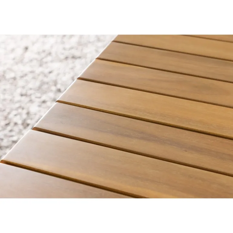 - Moderne design: Ribbet bordplade i akacietræ kombineret med en minimalistisk base i sort stål.